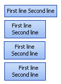If you need to squeeze the content more closely together then you have two options. The preferred method is to auto size the control so that it automatically resizes to be just big enough to hold the content. You could also add a larger Padding value so that the spare space is reduced forcing the content closer together. Figure 9 shows the auto sizing approach followed by the Padding approach where it has been defined as 22 pixels of padding for each edge. The last picture in Figure 9 shows both the auto sizing and Padding applied to the same control.