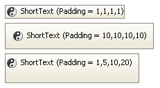 Padding specifies how far to inset the content from the outside of the control. You can provide a value that is the same for all the sides or individual values for each of the edges. Figure 5 uses a KryptonButton control that is auto sized to demonstrate how padding values affect the size and drawing of the control.