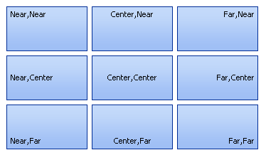 Positioning is easiest to understand by using examples. In Figure 6 a sequence of images shows the ShortText positioned inside a fixed size KryptonButton. In each case the actual display text is the horizontal and vertical alignment values.