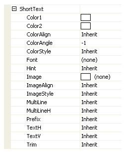 Figure 13 shows the full list of extra properties that are available for both the ShortText and LongText. The TextV and TextH properties have already been described above in the section about positioning.