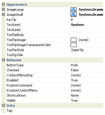 The button item must always have valid images defined for the ImageLarge and ImageSmall. If you assign null to the properties then it will automatically revert to a default Krypton Toolkit logo image instead. When the button is the full height of the group content area the ImageLarge property is used, all other cases use the ImageSmall property.