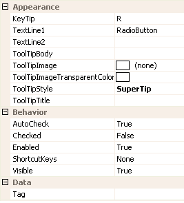 When defined as True this property will ensure that the radio but is automatically reset to false when any other radio button inside the same ribbon group becomes checked. This allows a group of radio button instances to act as a group where only a single radio button is checked at any time. It also allows the user to alter the checked state by clicking the control.