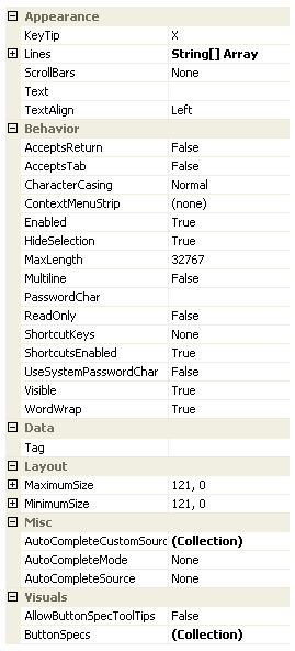 Figure 1 - Group Item TextBox Properties